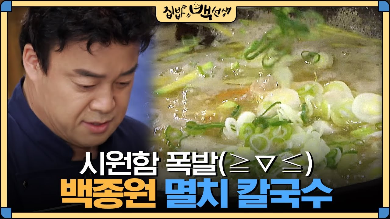 [1] 만개의레시피 - [집밥] 백종원 멸치칼국수 # 국물이 끝내줘요 (https://www.10000recipe.com/recipe/6861853?srsltid=AfmBOoqoSk0k99-qYVWSqZXCrD46HDQ66BwYoTzCnLawOA_pWtwfssAd)