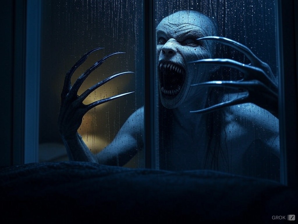 나는 그날 밤 일기를 쓰고 있었다. 창 밖에서 들리는 빗소리가 내 방 안을 가득 채우고 있었다. 창문을 두드리는 빗방울 소리가 점점 더 커지더니, 어느 순간 그것은 빗소리가 아닌 다른 소리로 변했다. 누군가가 창문을 긁는 소리였다.처음에는 나뭇가지가 바람에 흔들려 창문에 부딪히는 소리라고 생각했다. 하지만 그 소리는 점점 더 규칙적이고 의도적으로 들렸다. 철제 손톱이 유리를 긁는 것 같은 날카로운 소리가 내 척추를 타고 올라왔다.용기를 내어 창문 쪽으로 고개를 돌렸다. 그 순간, 나는 창 밖에서 누군가의 얼굴을 보았다. 창백하고 핏기 없는 얼굴, 그리고 비정상적으로 크게 벌어진 입가에는 날카로운 이빨들이 촘촘히 박혀있었다. 그의 손가락에는 15cm가 넘는 쇠붙이로 된 손톱이 달려있었다.비명을 지르려 했지..