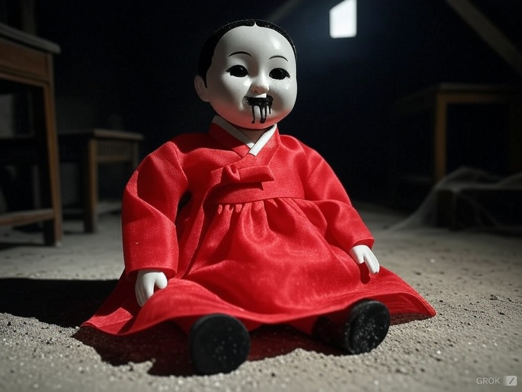 할머니가 돌아가시고 한 달이 지났을 때였다. 유품 정리를 위해 할머니 댁을 찾은 나는 다락방에서 붉은색 한복을 입은 전통 인형을 발견했다. 처음 보는 인형이었지만, 왠지 모르게 눈이 마주치자 심장이 쿵쾅거렸다.인형의 얼굴은 하얀 도자기처럼 반들반들했고, 검은 눈동자는 마치 살아있는 것처럼 반짝였다. 붉은 한복은 오래되어 보였지만 묘하게 선명했다. 이상했다. 20년 넘게 다락방에서 먼지를 뒤집어써야 할 물건이 이렇게 깨끗할 리 없었다.그날 밤, 인형을 내 방에 가져다 놓고 잠이 들었다. 한밤중에 "툭" 하는 소리에 잠이 깼다. 인형이 있던 자리가 비어있었다. 순간 등골이 오싹해졌다. 방 안을 둘러보니 인형이 문 앞에 서 있었다. 분명 책상 위에 놓아두었는데.공포에 질린 채 쳐다보고 있자니, 인형의 입가가 ..